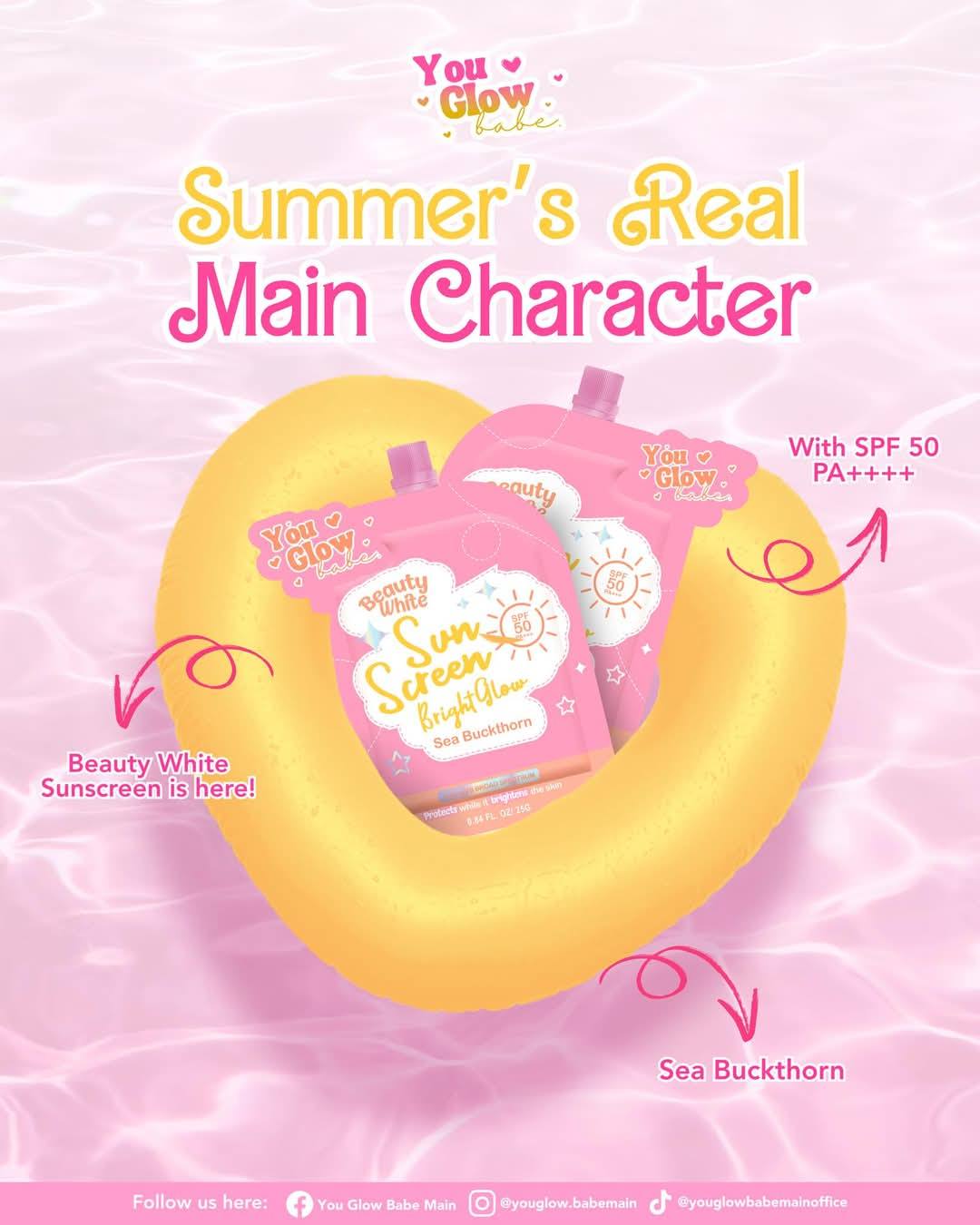 You Glow Babe Beauty White Sunscreen offers SPF 50 PA+++ protection against both UVA and UVB rays, helping to prevent sunburn and premature aging. It also contains skin-loving ingredients like Sea Buckthorn, Polymnia Sonchifolia Root Juice, and Grape Seed Oil, which provide nourishment and contribute to a radiant, even-toned complexion.