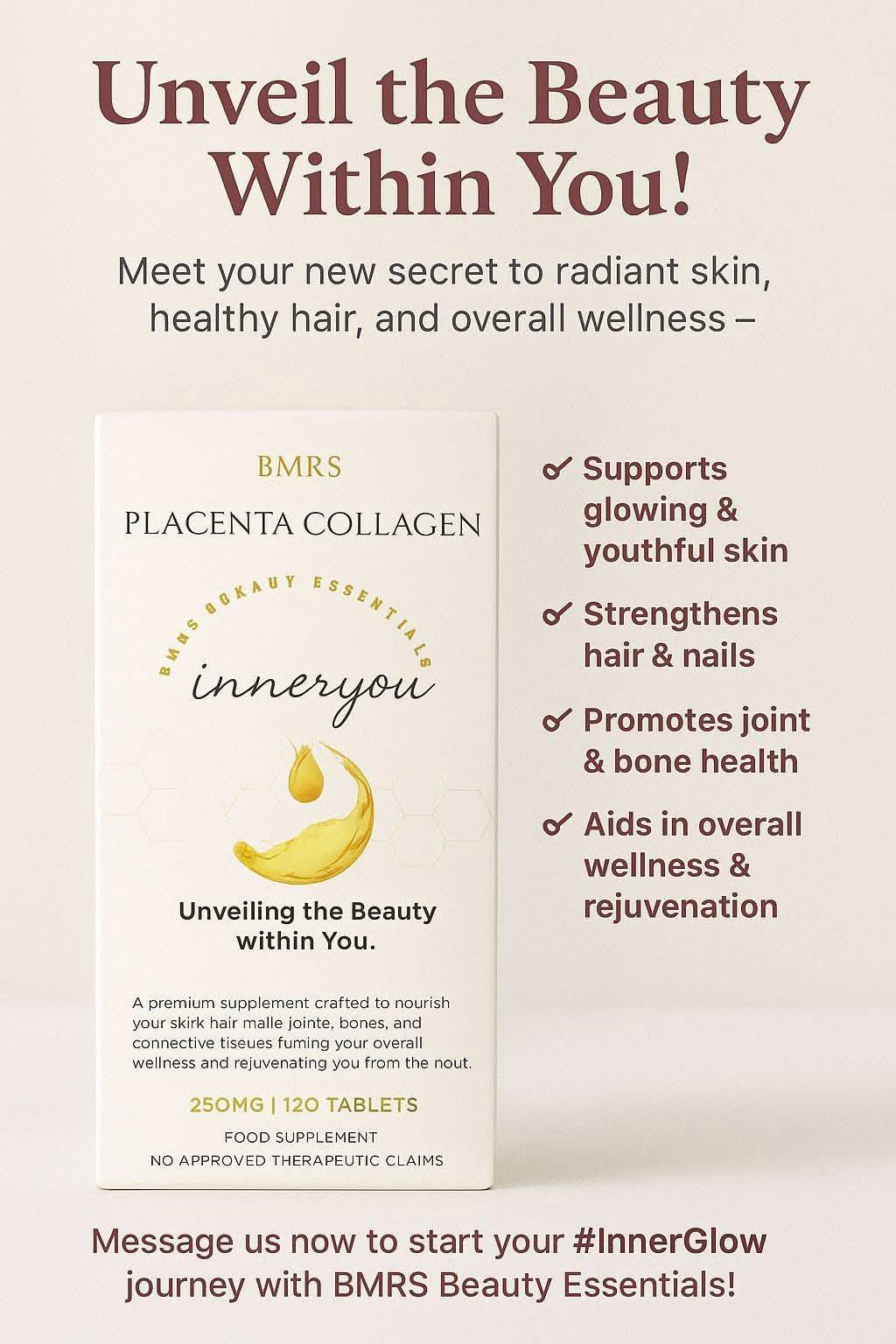 BMRS Beauty Essentials Placenta Collagen Inner You 250mg combines placenta extract with collagen to support skin elasticity and hydration. This supplement aims to promote a youthful complexion by enhancing your skin’s natural repair processes. Designed for those seeking expert skincare benefits from within, it contributes to overall skin health and vitality.