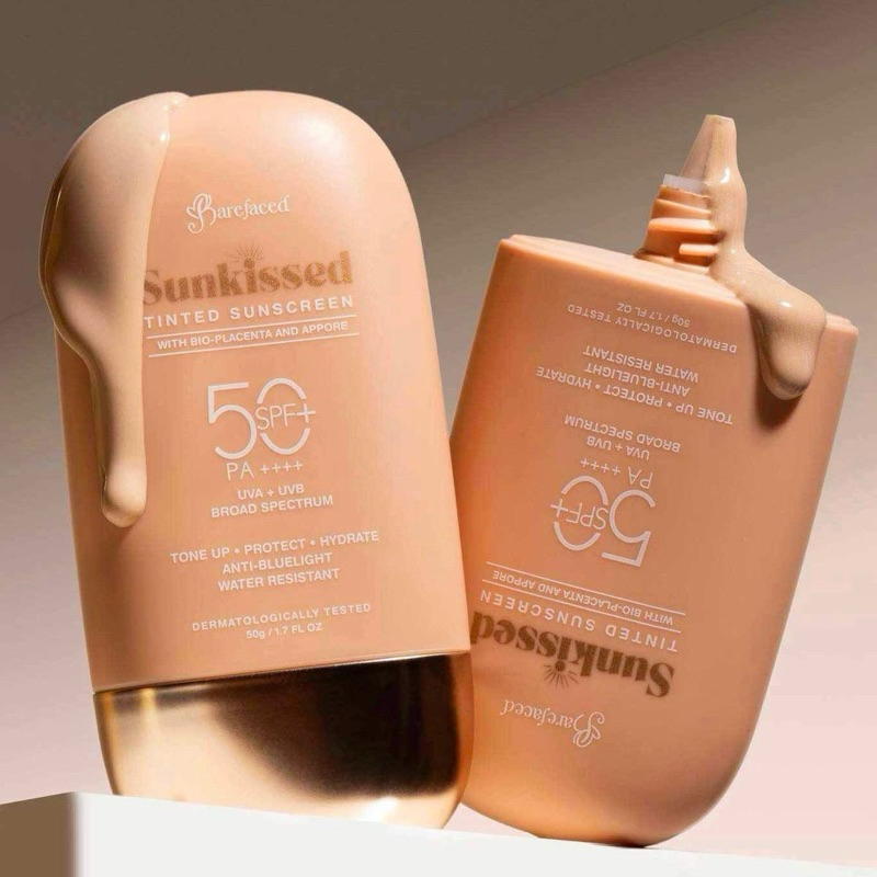 The Barefaced Sunkissed Tinted Sunscreen SPF 50 PA++++ is a lightweight, multi-functional skincare product offering strong broad-spectrum UV protection, a natural tint to even skin tone, and added benefits like hydration (Hyaluronic Acid, Niacinamide) and anti-aging (Peptides, Vitamin E) for a healthy glow, suitable for daily wear and various skin concerns, providing defense against UV, pollution, and blue light.