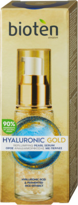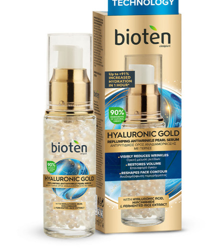 Bioten Hyaluronic Gold Face Serum Hydrating & Firming 30ml is an anti-wrinkle, skin-plumping serum that uses "smart pearl technology" to deliver intense hydration and anti-aging benefits. Key benefits include wrinkle reduction, improved skin tone, and restored volume.