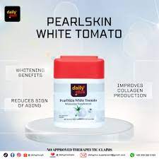 Daily Plus PearlSkin White Tomato is a 6-in-1, non-GMO, and anti-aging skin supplement formulated with white tomato extract (rich in phytoene and phytofluene), glutathione, and vitamins, designed to brighten skin, reduce hyperpigmentation, and provide natural sun protection. It aims to enhance skin texture, boost collagen, and act as an antioxidant.
