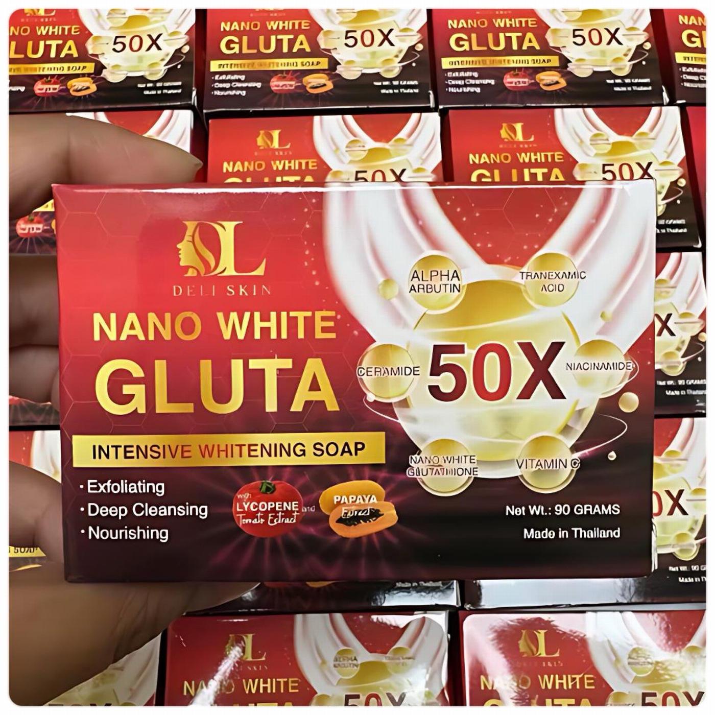 Experience brighter, smoother, and healthier-looking skin with Deli Skin Nano Gluta Soap. Formulated with Nano White Glutathione, Vitamin C, Niacinamide, and Alpha Arbutin, this soap helps promote intensive whitening, deep cleansing, and gentle exfoliation. It effectively removes dirt, excess oil, and dead skin cells, leaving your skin fresh, smooth, and fragrant after every wash.