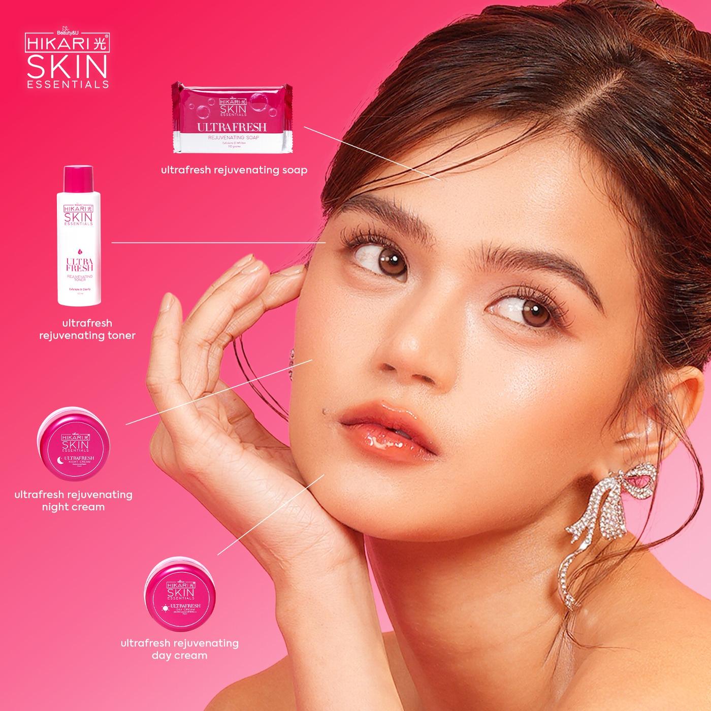The Hikari Skin Essentials UltraFresh Rejuvenating Set is a comprehensive four-step skincare system designed to brighten, heal, and renew the skin. It targets common concerns like acne, dullness, fine lines, and rough texture to achieve a "glass-skin" finish.