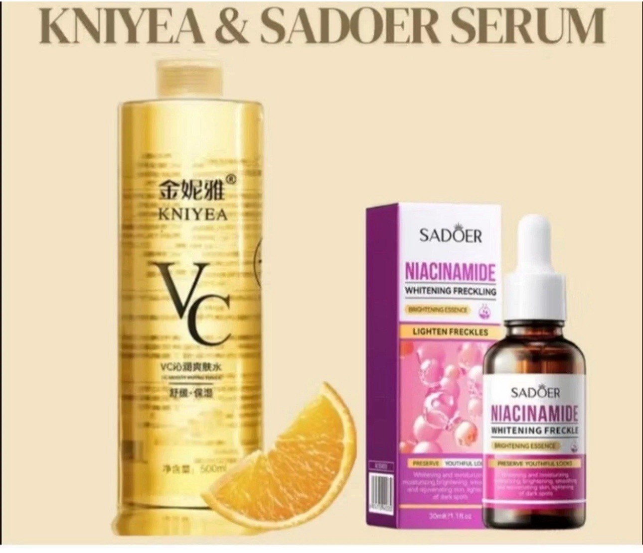 Based on the provided information, both the Sadoer serum and Kniyea VC toner offer a range of benefits for the skin, particularly when used together.