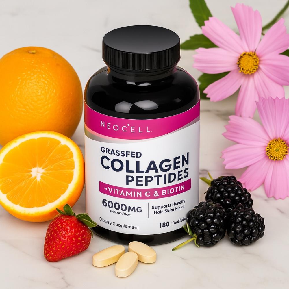 NeoCell Grassfed Collagen Peptides + Vitamin C and Biotin (180 tablets) is a simple supplement meant to support your skin, hair, and nails from the inside. It uses hydrolyzed collagen, which just means it’s broken down so your body can absorb it more easily.