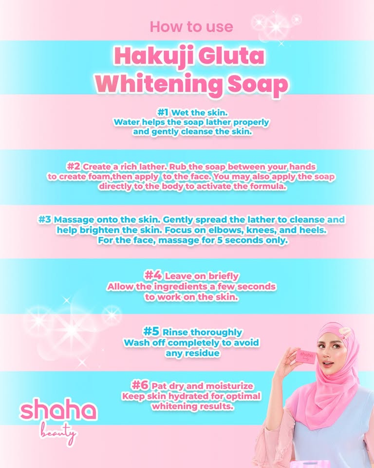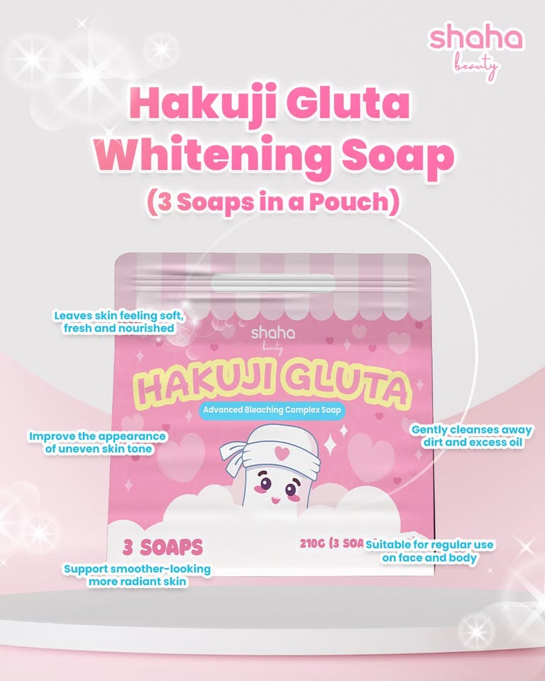 Hakuji Gluta Soap is a daily cleansing bar formulated for both the face and body. It combines traditional soap-making methods with a blend of widely used skin-brightening agents to help address uneven skin tone and surface impurities.