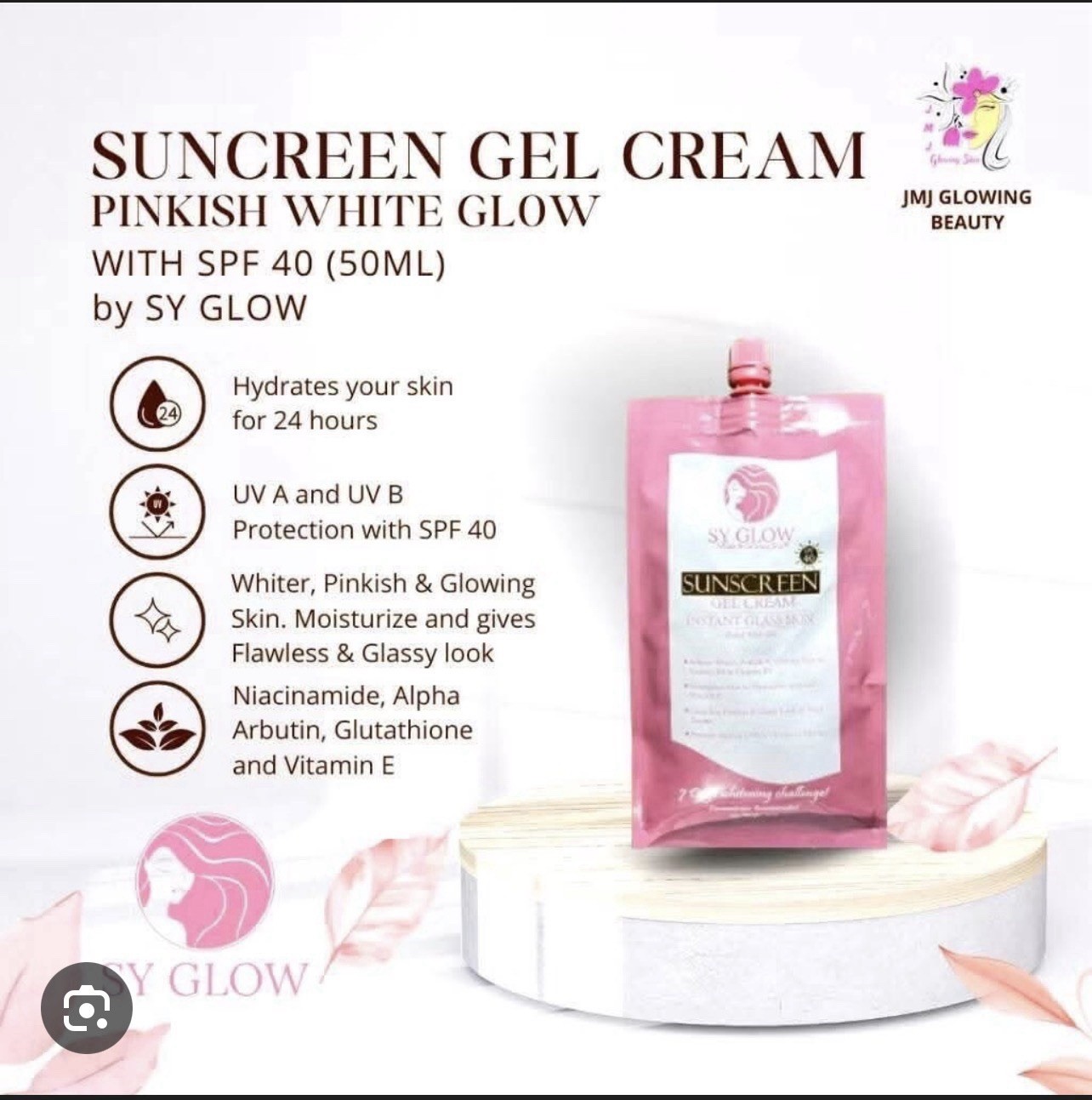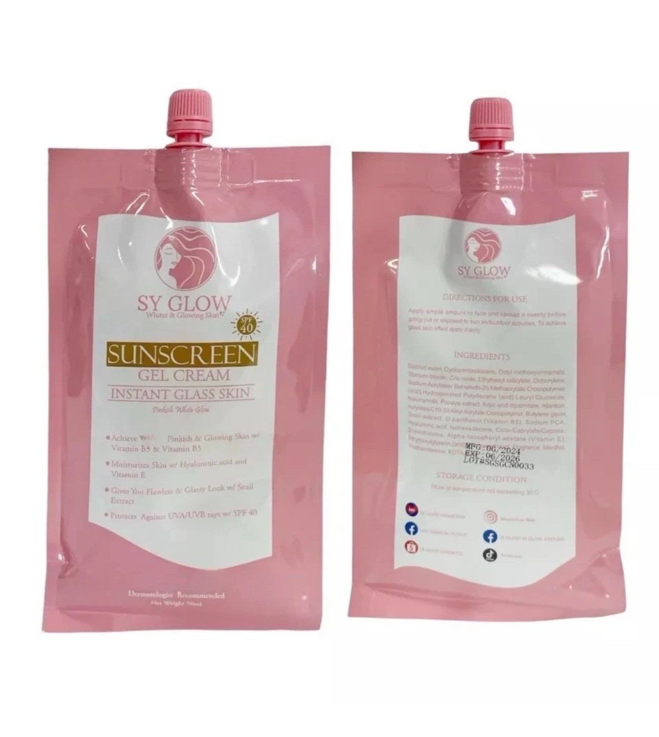 The SY Glow Sunscreen Gel Cream SPF 40 50ml is a lightweight, non-greasy formula that offers sun protection while providing a moisturizing, instant glass skin finish.