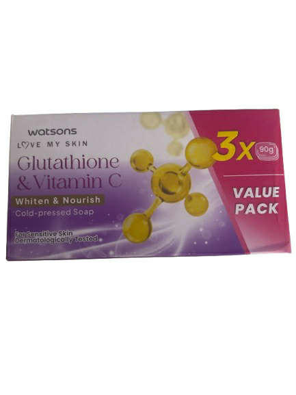 Watsons "Love My Skin" Glutathione & Vitamin C Soap is a skincare product designed for brightening and nourishing skin, combining Glutathione to reduce dark spots and pigmentation with Vitamin C for collagen boost and radiance, aiming for smoother, more even-toned, and glowing skin with antioxidant benefits. It's often found in Watsons stores (especially in the Philippines) and online, praised for its ability to lighten marks and provide a healthy glow.
